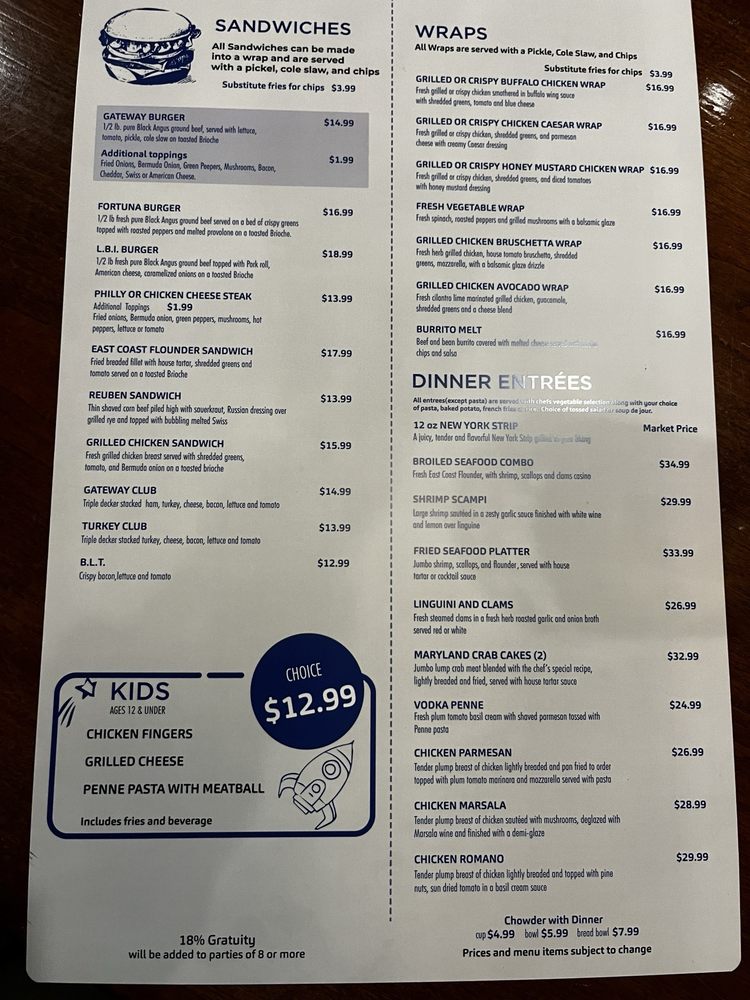 Nestled in Ship Bottom, NJ, The Gateway Bar, Restaurant and Liquor Store offers a delightful blend of Italian and seafood cuisine. This charming spot is renowned for its signature clam chowder, available in various sizes, including a perfectly baked bread bowl. Many guests proclaim it the best they've ever tasted.